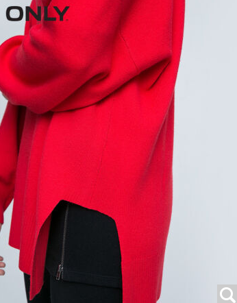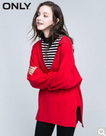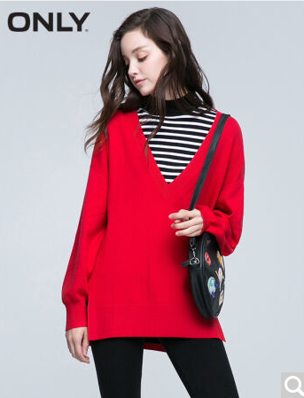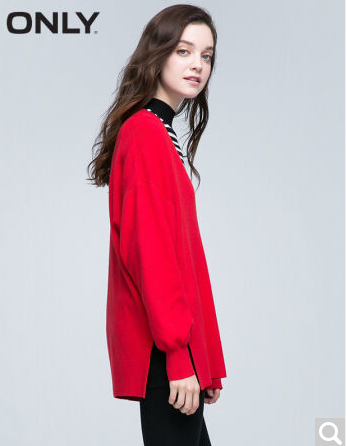 • 商品名称:ONLY2017早春新品大V领宽松下摆开衩长袖针织衫女ES|117124502 F17庆典红 165/84A/M
