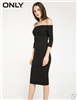 ONLY春季新品含莱卡面料五分袖修身露肩一字领针织连衣裙女E|116361504 ...