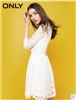 ONLY春季新品纯棉修身高腰镂空蕾丝连衣裙女L|116307501 021奶白 ...